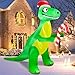 [ 12 Ft Tall Christmas Inflatable Dinosaur with Candy Cane ] The 12 Ft tall Christmas inflatable green dinosaur outdoor decoration wears Santa hat, holding a Christmas candy cane. Copyright Certificated Model.