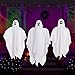 FABULOUS DESIGN. 3 different traditional ghost faces patterns add variety and our cute halloween hanging decorations will add more fun to your Halloween. The hanging ghost is made of white durable fabric cloth over a Styrofoam ball head and flexible Styrofoam stick arms, with a sturdy string to hang it up easily, lightweight and blow well in the wind.