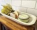 Can be used as a soap dish, but extended exposure to standing water may damage resin finish