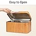VERSATILE CUTTING BOARD LID- Removable lid allow the moisture from bread flow out to keep bread longer, Sturdy bamboo material not only healthy, Also durable enough to be used as a cutting board, Convenient for slicing bread and no worry the crumbs scattered your table