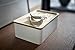 THOUGHTFUL DESIGN: The recessed surface of the wooden lid doubles as a tray both when it's on or removed from the box, allowing for extra storage and display options.