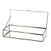A decorative box featuring a brass-tone frame with clear glass walls and a mirrored bottom base