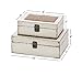 FEATURES RECTANGLE WOOD BOX: This farmhouse style inspired design white wood and burlap storage box set features a rectangular design with an opening lid furnished with a metal latch and a burlap fabric detail on the lid