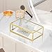CLASS DECORATIVE BOX - Made of durable metal frame which finished with beautiful gold color,exquisite workmanship and low-key luxury feel. Clear glass and mirror base design makes it looks more elegant. This is a beautiful addition to your dresser which can light up your place and brighten everyone's eyes.