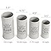 NESTING CANISTER SET: These beautiful and inviting food safe metal nesting canisters will evoke the country farm feel into your kitchen. Add style and functionality with these rustic farmhouse kitchen accessories. Hand wash only. Not suitable for dishwasher, microwave or oven. Set of Four. XS - 3.5 x 7.75” H, S - 4.5” x 9.25” H, M - 4.75” x 10.25” H and L - 5.5” x 11.25” H. Volume of each canister: XS: 4 cups, S: 7.75cups, M: 10.25 cups, L: 14.5 cups