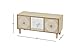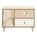 Natural light beige wood grain finish with white-painted mandalas and white center drawer with border; small, round metallic gold handles and one large, white resin bull skull handle with metallic gold tips on the horns and a coral-colored flower pattern on the forehead