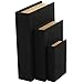 BLACK MATTE FINISH: Wooden fake book set highlights a solid black linen fabric exterior and matte black interior storage space, with old yellow paper-inspired detailing