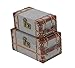FEATURES RECTANGLE TRUNK: Stackable storage trunks feature three varying size chests with leather buckle straps, bolted handles and rivet detailing for a realistic touch