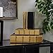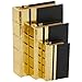 GOLD AND BLACK SHINY FINISH: Wooden fake book set highlights a shiny metallic gold spine with a matte black base and gold paper-inspired detailing