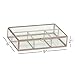 FEATURES RECTANGLE JEWELRY BOX: Rectangular jewelry box showcases a chic clear glass exterior designed with metal lined dividers, outer frames, and accent ring handle