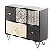 This eclectic box with drawers is constructed of solid and smooth wood and faux leather materials