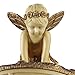 A chubby-cheeked, flower-wreathed fairy peers into a reflecting pond in this intricately sculpted design