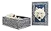 This exotic celtic wolf decorative box features a striking wolf head of the color Gray or White at the center of the lid. All around it are celtic knotworks in silver gray finish. The wolf head is set against a warm starry night blue background.