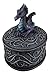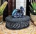 Perfect for storing many of your small items with ease, this Oval Medieval Dragon Trinket Box is just as decorative as it is quite useful. Covering the surface of the box are lovely medieval ivy accents that create an authentic look. A stunning blue and purple dragon sits perched on top of the box, acting as both a decoration and a handle.