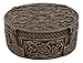 This exotic bronze color viking knotwork box is one of a kind small decorative stash storage figurine. It is intricately designed with viking old gods knotwork and symbols, capped off with the Mjolnir Thor Hammer around the sides of the box. It will make an awesome gift for Dads, Viking Fans or what have you!