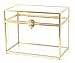 A decorative storage and display case made of clear glass with a brass-tone metal frame.