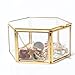 💗 Glass Jewelry Box: Unique hexagonal glass box handmade with brass frame and clear glass, modern art design style make it looks special.store your trinket securely and displayed beauty and shine inside the tiny gold glass box.