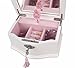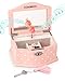 🤍 MUSICAL & MAGICAL - Hinged lid lifts to reveal a twirling ballerina and the sounds of "It’s a Small World". Features a mirror, a spacious interior compartment lined in soft pink, winding key on the back and a gold clasp on the front.