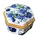 Made of porcelain, the hexagon keepsake box has a floral design, gold-tone metal edge, hinged lid and clasp