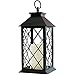 INDOOR VINTAGE LANTERN WITH LED PILLAR CANDLE - Designed with hollow-out patterns, the lantern allows LED glow to go through the holes to shine on the floor for a brilliant scene - 9.5" tall vintage candle lantern in Textured BLACK creates an aura of old world charm - Lantern is made of top quality ABS thermoplastic that is sturdy & of high tenacity, showing the metal's Look - Includes a LED bisque pillar candle that has the look of a real wax candle with Warm White flicker - INDOOR Use Only.