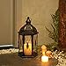 STURDY BUILD - This decorative lantern is made from supreme quality wrought iron material with rust-resistant powder coating which is durable but lightweight for long-time use. Four glass window panes let light flicker through and protect the flame from drafts which is great for outdoor and indoor use. Place a candle(up to 7" dia) inside the lantern to illuminate your space in a soft and dreamy glow. Measures 5 1/2"W x14 4/5"H.