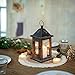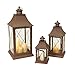 VERSATILE DECOR - This farmhouse-style decorative lantern with a distressed brown finish includes a flickering pillar candle. Now add a seasonal touch to any occasion. Dimensions: 5" L x 5" W x 12" H.