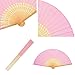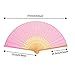 Material: made up of pink silk fabric and bamboo ribs, pink fans create a romantic look; Size: measures about 8.3 inch/ 21 cm long and 14.6 inch/ 37 cm wide (when open)