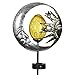 MOTHER NATURE GARDEN DECOR: Framed in a circular metal décor designed with silver moon and sun, this metal yard stake adds an ornate touch to an indoor or outdoor space. It provides a warm, soothing solar-powered lights at night. Make sure to display this amber cracked glass garden décor anywhere it receives enough sunlight. It turns on instantly at night, giving you a bright evening backdrop for long hours.