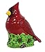YULETIDE CARDINAL: Charming canister looks like a red cardinal bird perched among holiday greenery