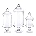 The Mantello candy buffet containers set includes 3 beautiful glass apothecary jars with lids in varying shapes and sizes.