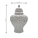 This delicately crafted ginger jar showcases a modern take on a classic silhouette with an intricately painted pattern and semi gloss finish