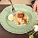 【Unique Design】Inspired by the rose, which symbolizes beauty, fragrance, enthusiasm and love in the United States, we designed the flower rim as the highlight of REOMORE dinner plate. And we layout our unique color matching - ivory white with light green rim, light yellow with light green rim and green with light yellow rim, making main dessert, steak, pasta, salad, Risotto and other main courses more beautiful, delicious, tasty and appetizing.