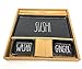 Serve your sushi on this black ceramic decorative tray inscribed SUSHI in LL white. Comes with two dipping bowls and two sets of chop sticks.