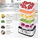 PREMIUM MATERIAL - Made of a stainless-steel base and premium plastic trays, all the materials are free of BPA, and are absolutely safe for your health; The digital LED display screen allows you to accurately time and control temperature settings; Enjoy an easy, healthy homemade snack without any additives