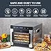 DIGITAL THERMOSTAT AND TIMER- AUTOMATIC SHUT OFF WHEN TIMER DONE -- An adjustable temperature and timer ensure you to have your delicious, dehydrated food done to perfect at optimal temperature and exact timing; the Countdown timer will show you when it will be done, once done it will automatically shut off
