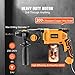 Powerful & Durable Motor: A 13Amp industrial motor with 10J impact energy is designed to complete heavy-duty concrete and metalworking projects quickly and precisely. Heat-resistant copper wire motor allows you to work longer without burning the machine. The max drilling diameter is 1-9/16 inch. 1600W high-performance rotary hammer drill helps increase your efficiency and improve your life.