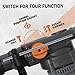 Four Functions & Side Mode Selector with Lock: With four functions (Drilling, Hammer Drilling, Chiseling-Free Rotation, Chiseling-Fixated) to meet various needs. The side mode selector with lock design extends life for more work and security.