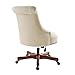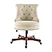 Button tufted back, in a beige colored fabric that’s accented with antique bronze nail-heads.