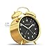 DECOR: Classic brushed metal design will make this alarm clock fit into any decor. Perfect for bedside, the office, desktop or just a cute clock in any space. Monochromatic gold finish on the rim and face. Great gift.