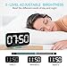 ⏰SNOOZE MODE + NIGHT MODE — Digital alarm clock snooze button is located on the top of the clock and can be easily turned off, allowing you to get 5 to 60 minutes (settable) of extra sleep time; night mode means that the LED automatically enters the lowest brightness display state at night,don't affect your sleep.