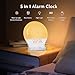 WHITE NOISE MACHINE & TIMER: More than a wake-up light sunrise alarm clock, the alarm clock has 11 white noise sounds and 31 soothing musical sounds, is also a powerful baby sleep soother and a sound machine for sleeping. The white noise sound machine has a timer feature for you to decide when to stop the white noise. You can set it up to 8 hours to stop, surely to assist you falling asleep through the whole night. The music volume is 16-level adjustable, from 72db to 110db.