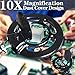 10X Ultimate Magnifier: According to the analysis of our research results on magnifiers, a new 10x magnifier is introduced. The material is high-definition colorless natural optical glass, and the curvature of the glass is the highest visibility to the naked eye, which means that we can achieve the highest glass magnification while ensuring the clarity. Provide your project with a high-definition magnifying vision without any distortion, which is very suitable for your hobbies.
