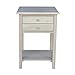 This table lamp is perfect for your bedroom nightstand or your living room end table. Its base is made from poly resin, and showcases a turned silhouette for elegant appeal, and a neutral finish with antiqued accents.