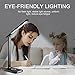 EYE CARE TECH: Bright and eco-friendly LED lighting with an anti-glare shade. 5 levels of adjustable brightness for clear reading and studying without eye strain.