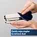 Metal reinforced base for enhanced performance; Base storage holds 4 staple strips for easy refill; great office supply; perfect office desk stapler or simply a desk stapler