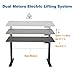 DUAL MOTOR ELECTRIC LIFTING SYSTEM: This desk has two motors for lifting, not like other desks which are equipped with just a single motor. It is worthy to buy! The powerful dual motor system running at a lift speed of 1''(Max) per second offers a smooth and stable desk height adjustment, from 27.7'' to 46.9'' (70.5cm-119cm). It is designed to hold up to 220lbs and make low noise (under 50 db) during height transition.