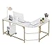 【Versatile Computer Desk】:Natural board and gold metal frame enabling a delightful decoration to match any style of room; The writing computer desk with 3 open shelves ideal for study, bedroom, living room, children's room, office, as a computer desk, office desk, dressing table, gaming table, bookshelf, writing desk, etc.