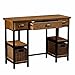Antique nutmeg finish with sturdy metal framework details makes this desk a topic of discussion