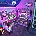 L Shaped Desk with LED Strip & Power Strip: Mutiple RGB colors to choose from, as well as a variety of modes, music sync, timer functions, etc, with 24 keys remote and smart APP control, you can easily improve your working/gaming room vibe according to needs and scenes. Featured built-in power socket with 3 outlets & 2 usb ports, it is convenient to charge your laptop, tablet or smartphone.
