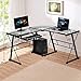 💻【DURABLE & STURDY CONSTRUCTION】The steel frame and reliable mechanical design of our computer desk to ensure the excellent stablility of the desk. The office desk made of 6mm toughened glass with perfect edge technology plus thicker steel frame, which can ensures strength and durability. Our l-shaped desk designed with adjustable leg pads for different height need, to keep the desk stable balance on the uneven floor and carpet. computer desk office desk l-shaped desk
